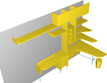Møbel for et hjemmekontor i 10ᵉ arrondissement av Paris. Brukeren er en firmarepresentant som ofte reiser. Møbelet akkomoderer brukerens mobile kontorutstyr. Prosjektets mål er å danne åpenhet og bevegelse i rommet, og å holde gulvoverflaten brukbar. Formen av skapene er tilpasset for godt innfall av dagslys på arbeidsbordet, ergonomi, optimal romutnytting og ståhøyde. Materialer: oljet MDF og rustfritt, matt stål.